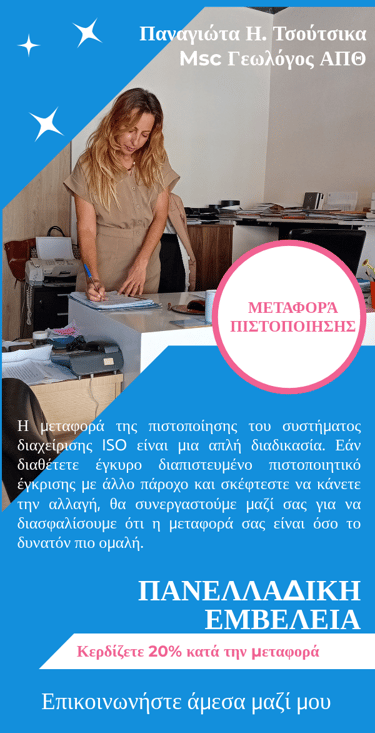 Είναι Επιθεωρήτρια Δομικών Υλικών - Εξωτερικός Συνεργάτης της εταιρεία QMSCERT ΕΠΕ"